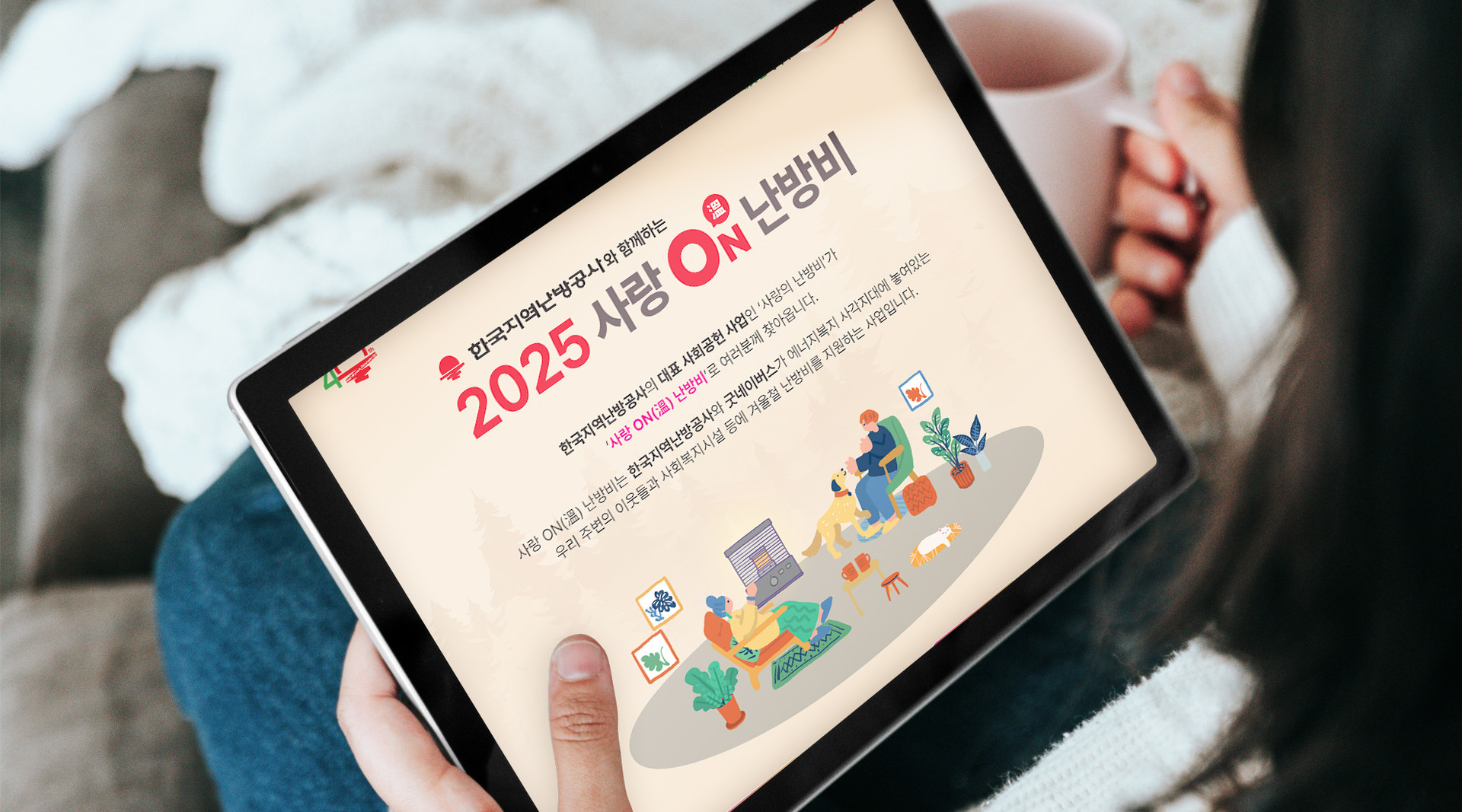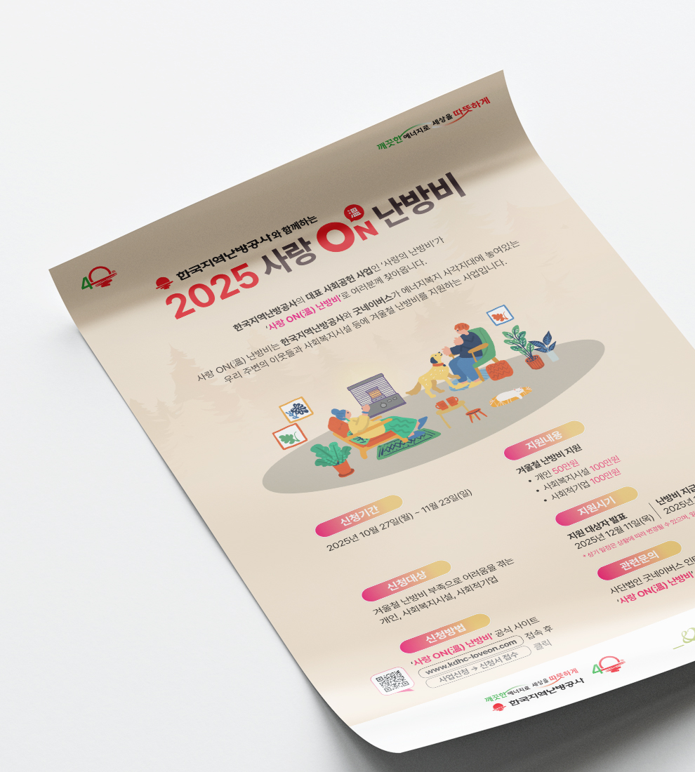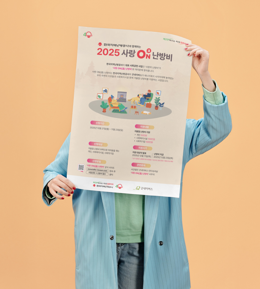 한국지역난방공사와 굿네이버스가 에너지복지 사각지대에 놓여있는 우리 주변의 이웃들과 사회복지시설, 사회적 기업에 겨울철 난방비를 지원하는 사업인 사랑 ON(溫)난방비 홍보 포스터 작업을 진행하였습니다.